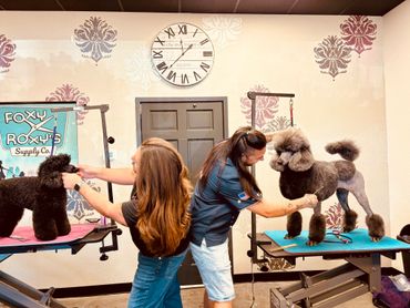 Learning scissor precision, mindfulness in accentuating each dogs physical strengths all while putting out consistent beautiful finishes! We had such a blast and I was so happy to see all of my staff stepping out of their comfort zones and and truly getting in touch with their own creativity and talent!