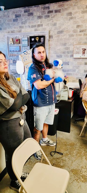 We did an incredible collaboration with THE Blake Hernandez and THE Elizabeth Gibbs! The staff thoroughly enjoyed this end of the year blow out surprise bringing not one but TWO celebrity groomers to our salon! Not only did EVERY groomer get one on one teaching from both Blake and Elizabeth, they got to witness the Celeb duo work together to create 2 wow factor creative grooming works of art on 2 different dogs! What a blast we had! This is why we call ourselves A Clip Above, because the energy, the opportunity for growth and the inspiration we exude into our staff is second to NONE!