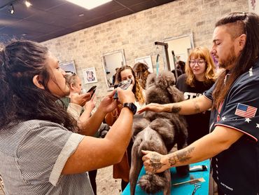 We had an intimate, engaging gathering with these two industry super stars! A Clip Above staff immersed themselves in 2 areas taught by Nathan and Kathlena; Intro to hand stripping and Asian Fusion techniques! This workshop resulted in an enriching experience filled with learning and laughter! Throughout the workshop, our staff delved deep into the skills and techniques that both Nathan and Kathlena demonstrated. They taught about innovative grooming tools, precision techniques, and exchanged valuable insights, fostering a dynamic and collaborative learning environment! The workshop wasn't just about mastering techniques; it was also a celebration of our passion and commitment to furthering education amongst our staff! Thanks again Nathan and Kathlena for coming and giving our staff an experience they will never forget!