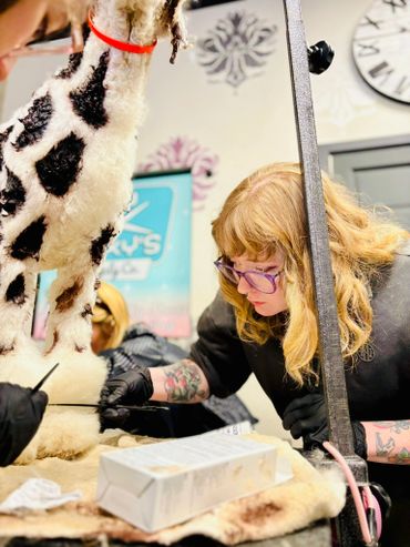 What an incredible weekend at A Clip Above! We had none other than THE incredible Jayne Gallagher! With a Halloween themed creative grooming workshop lead by one of the industry’s greatest, our salon was nothing less than captivated and inspired!!!! Jayne your passion for putting the animals first and celebrating each creature for their own unique imperfection was truly second to none, bringing multiple of us to emotional tears of inspiration! From technical info, to products, to tools, to technique, to love of imperfection in each pet, you’ve helped bring our salon to new heights! Thank you Jayne for an incredible workshop! Thank you, Blake Hernandez for referring such an incredible human with such a wealth of knowledge and love!! Thank you to all of our staff that showed up for furthering their knowledge, for the shop and for the pets!